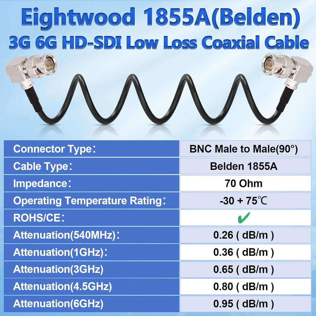 - Hergestellt mit hochwertigem Belden 1855A Koaxialkabel und präzisen BNC-Steckern für ultra geringe Signalverluste und herausragende Abschirmung gegen Störungen. Ideal für anspruchsvolle 6G-SDI/4K- und HD-Übertragungen
