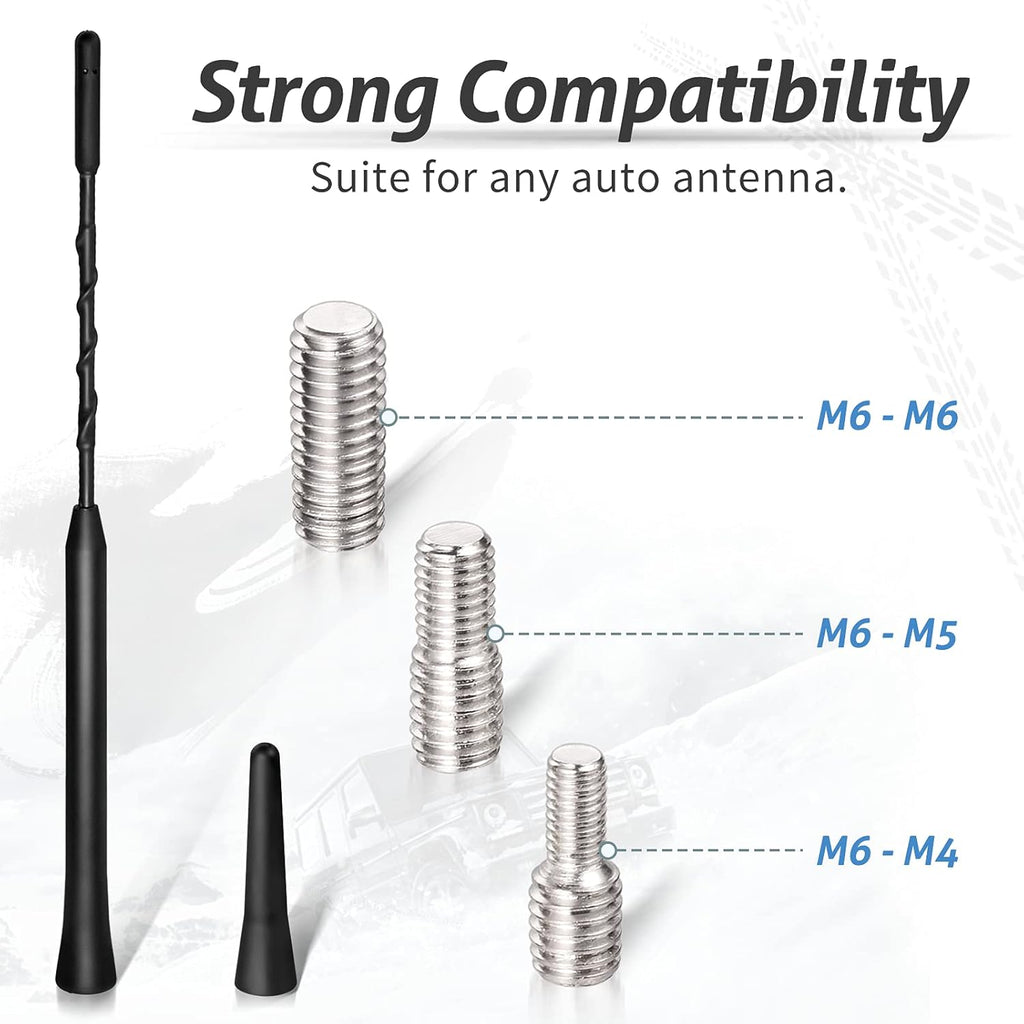 - 【Einfache Installation, Starke Kompatibilität】Diese Autoantenne ist einfach zu installieren und kann ohne Werkzeug schnell installiert werden. Kann verwendet werden, um alte Antennen zu ersetzen. Und ausgestattet mit drei Arten von Adaptern (M4, M5, M6) für Sie, die für verschiedene Arten von Autos geeignet sind (z. B. kompatibel mit dem Automodell Golf 4 Golf 5 usw.). Sie können den Adapter, den Sie benötigen, leicht finden.