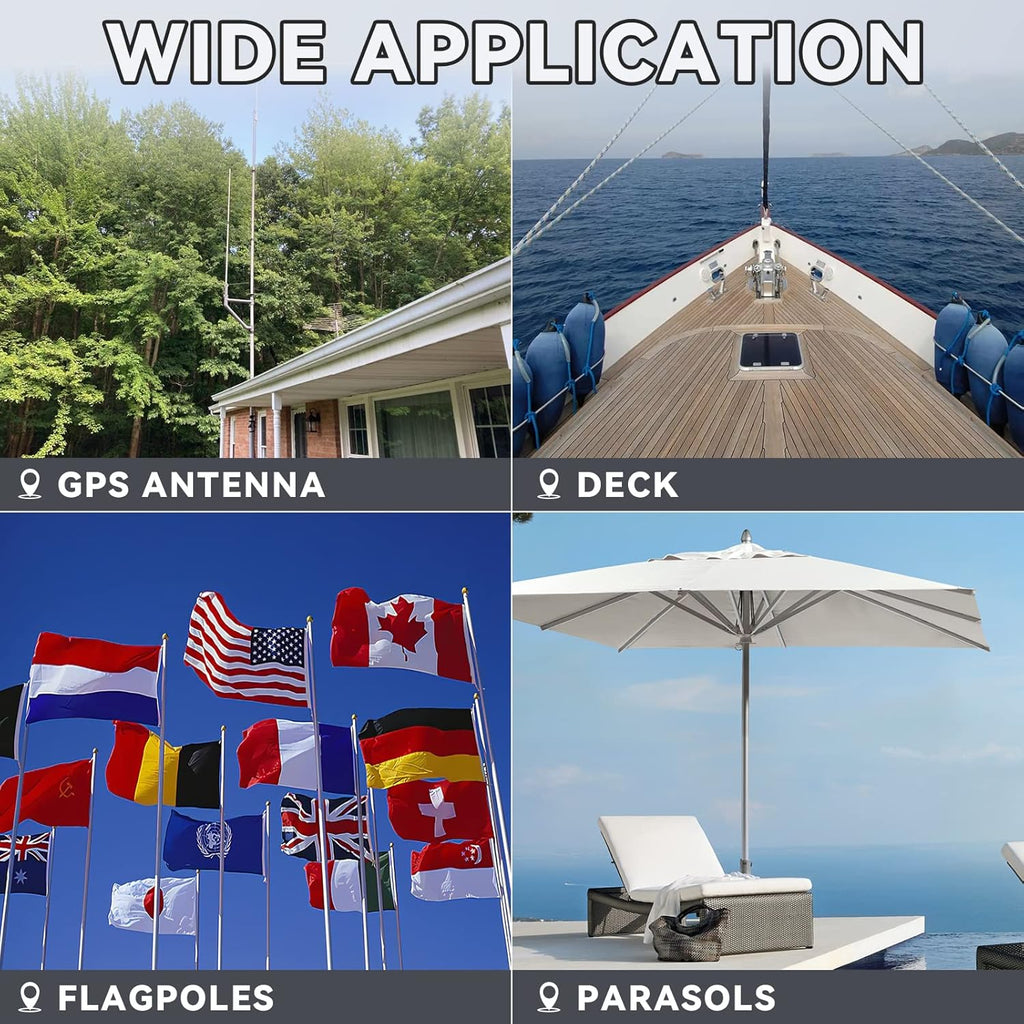 - 【WICHTIG VERWENDET】Diese Mastmontageklemme ist entworfen, um die meisten Wifi, PCS, Mobilfunk, TV-Antennen, CB, Schinken, Rohr, Flaggenstahl, Fackeln, Regenschirm, Sonnenschirme, Angelruten zu halten. Es ermöglicht Ihnen, die Länge des Montagerohrs zu variieren.