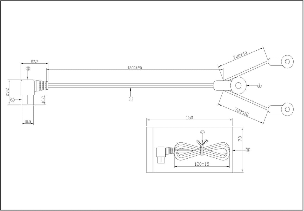 2. Die Kabellänge beträgt 1,8 m (6 ft), die Dipollänge jeweils ca. 80 c
