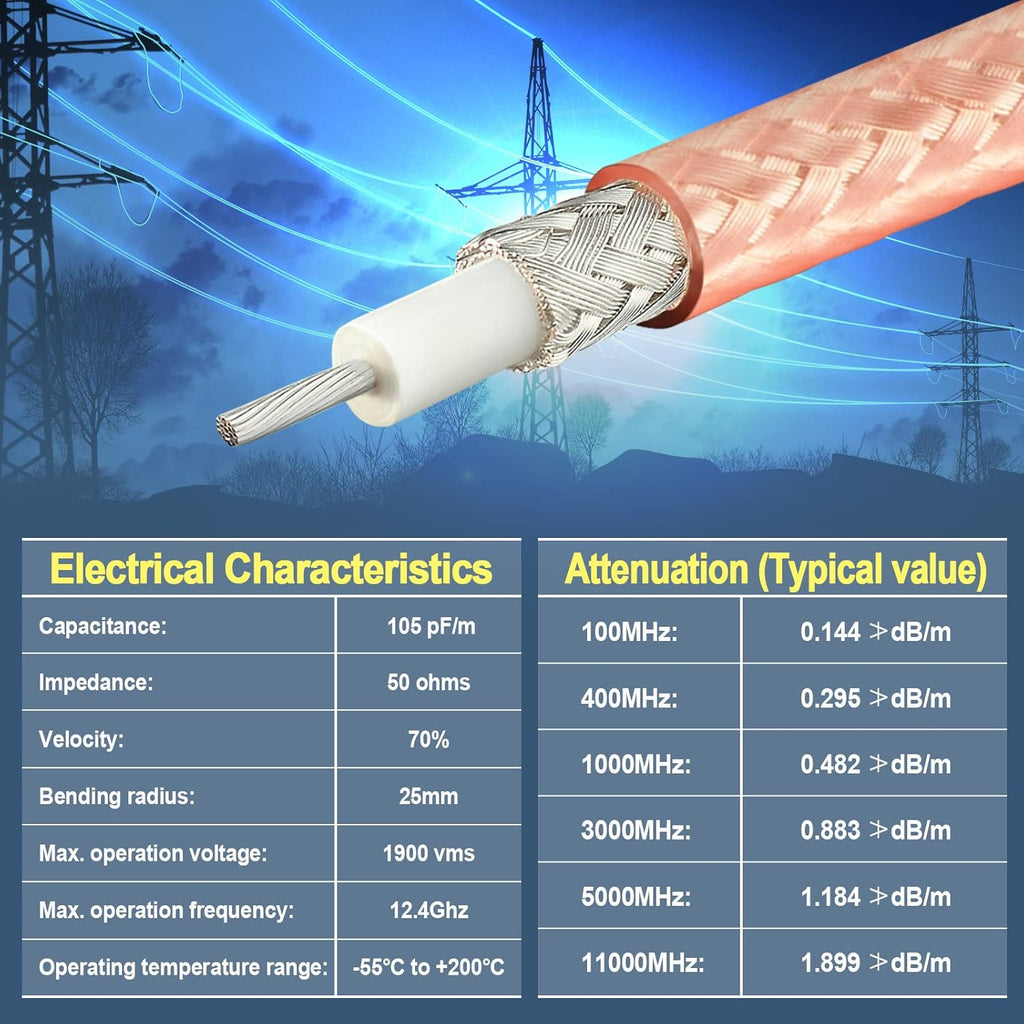 - Impedance:50 ohm | Package Includes: 1x 40 feet RG400 cable