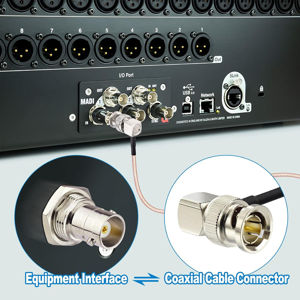 - Cable type: SDI cable RG179, cable length: 1 m, connector type: BNC male right angle to BNC plug straight, resistance: 75 ohm