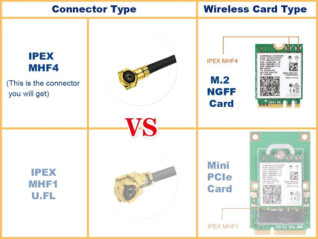 - Paket: 1x RP SMA Wifi Antenne, 2 stk MHF4 kabel