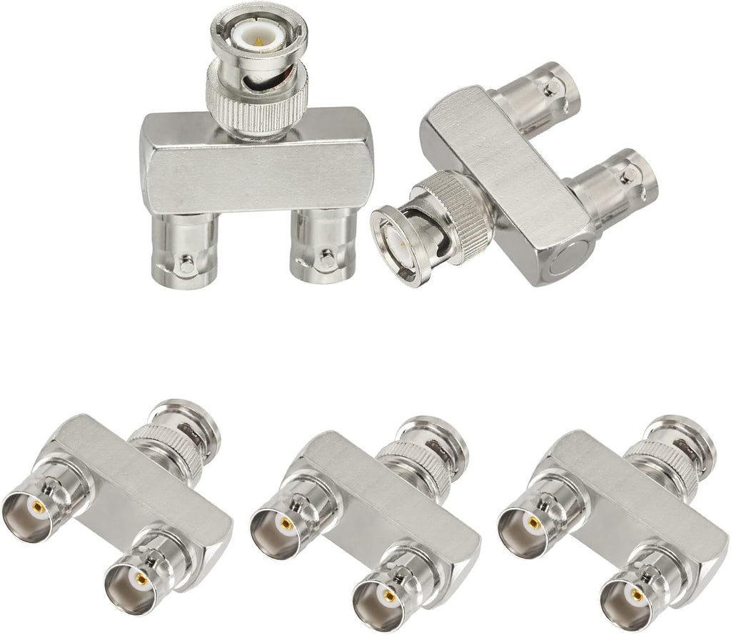 Eightwood BNC Splitter Adapter 5-Pack BNC Male to Dual BNC Female 1 in 2 Out 3 Way Audio RF Connector