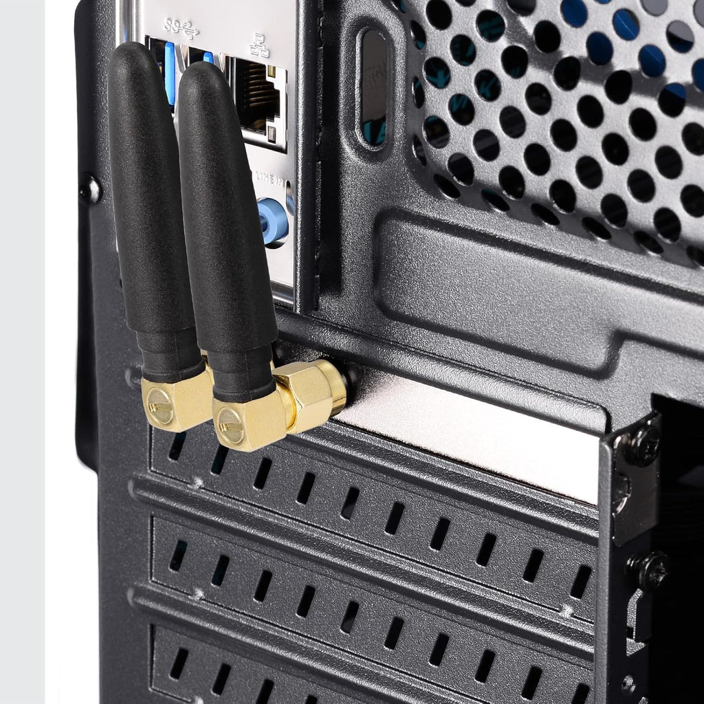 • Dual band WiFi antenna: 2.4GHz,5GHz,5.8GHz; Direction: Omnidirectional; Support 802.11 b/g/n/ac/ax; Connector: RP-SMA right angle