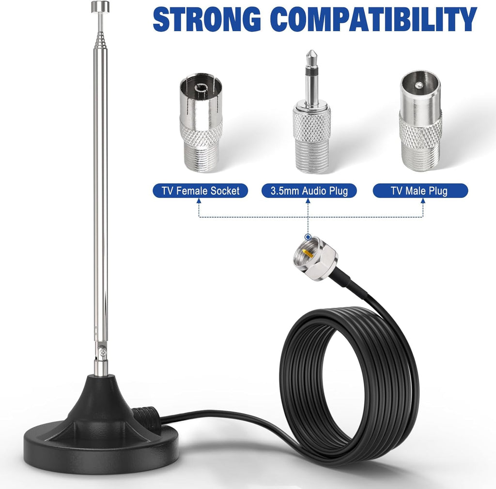 - Package Content – Includes 1 FM telescopic antenna and 3 adapters